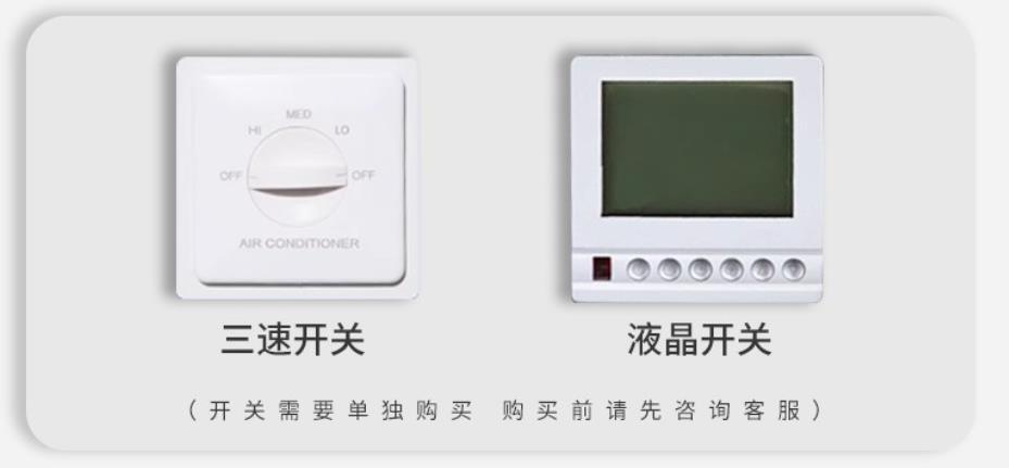 獨(dú)立控制:每個單元配備獨(dú)立溫控器和調(diào)速開關(guān),用戶可自行開關(guān)、調(diào)節(jié)風(fēng)速和設(shè)定溫度,實(shí)現(xiàn)房間的個性化溫控和節(jié)能運(yùn)行。