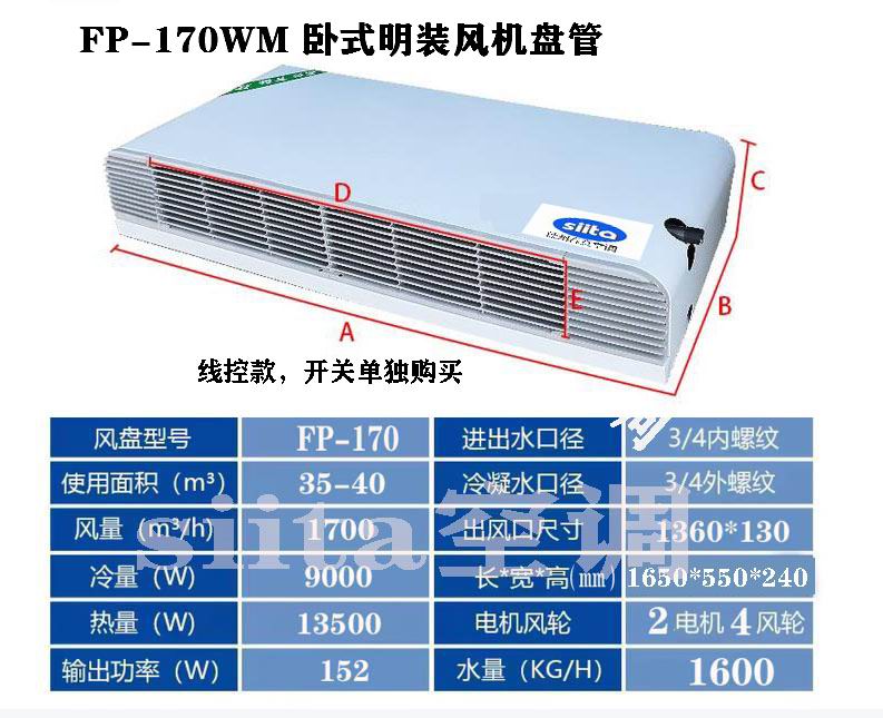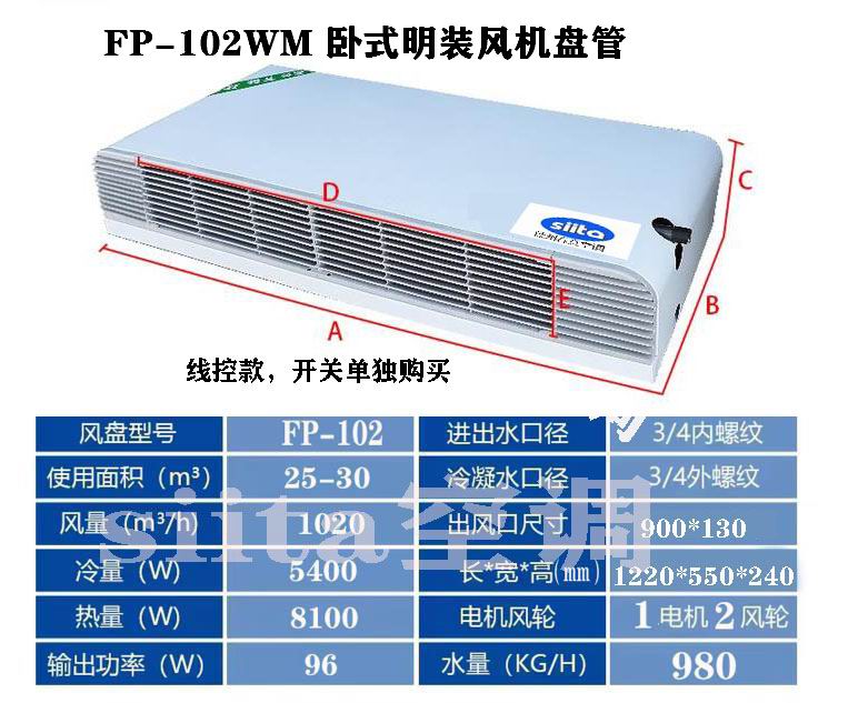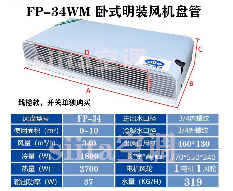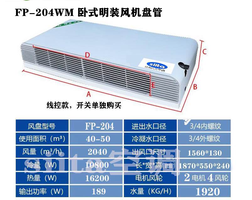 普通款臥式明裝風機盤管型號,參數選型表格